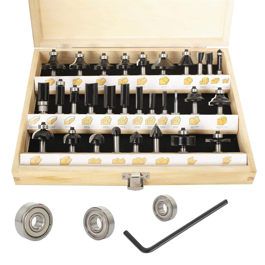 Sinoprotools 30 Stück Oberfräse Fräser Set HM, 8mm Schaft Fräser für Oberfräse,Oberfräser in Holzkof
