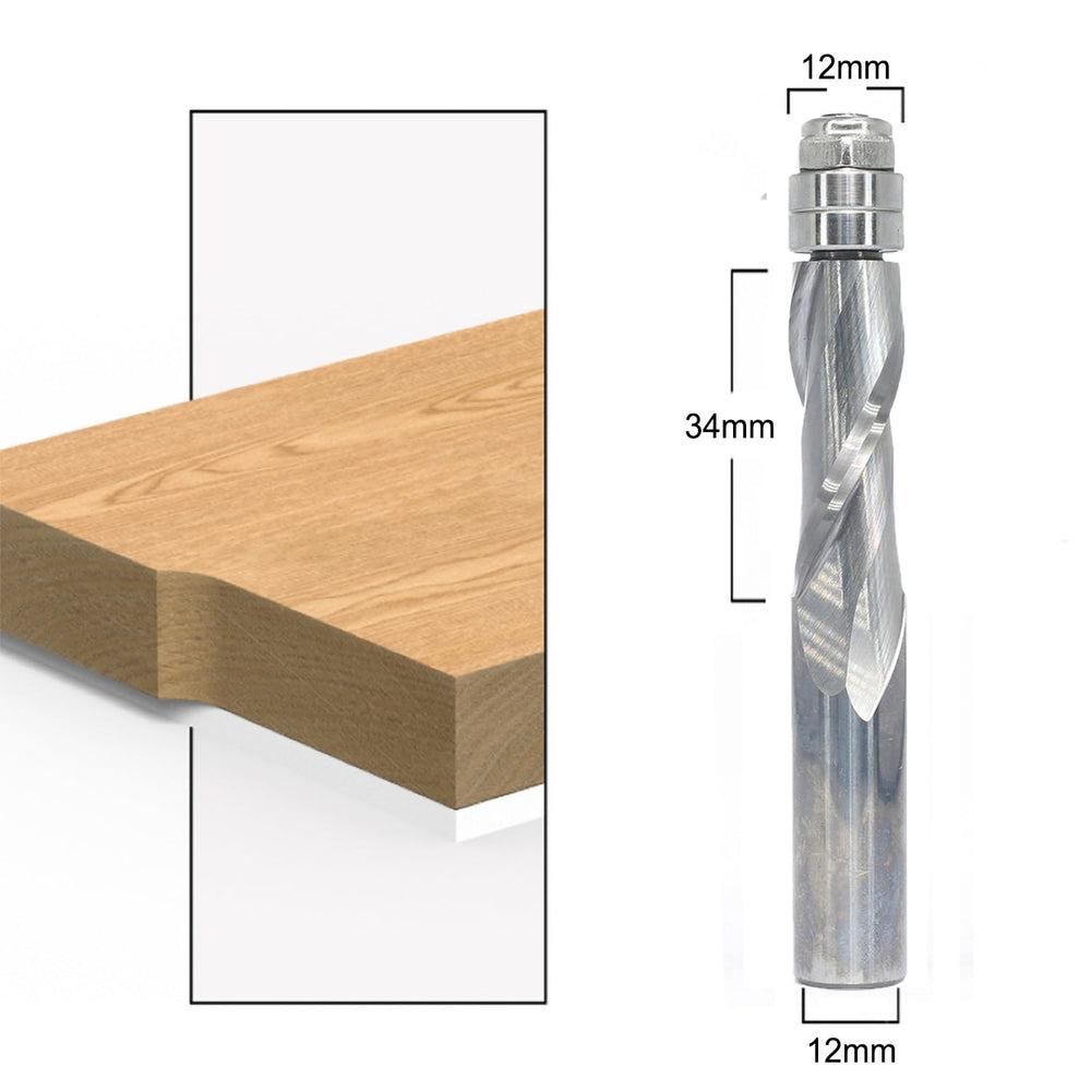 Sinoprotools Spiral Bündigfräser, 12mm Schaft Spiralfräser, Vollhartmetall/VHM CNC Oberfräser mit Do