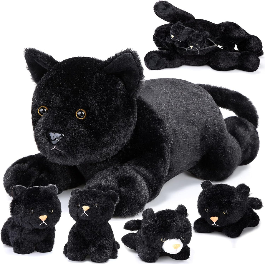 Skylety 5 Stück Katze Kuscheltier mit Babys Darin Mama Katze mit 4 Süssen Flauschigen Kätzchen Plüsc
