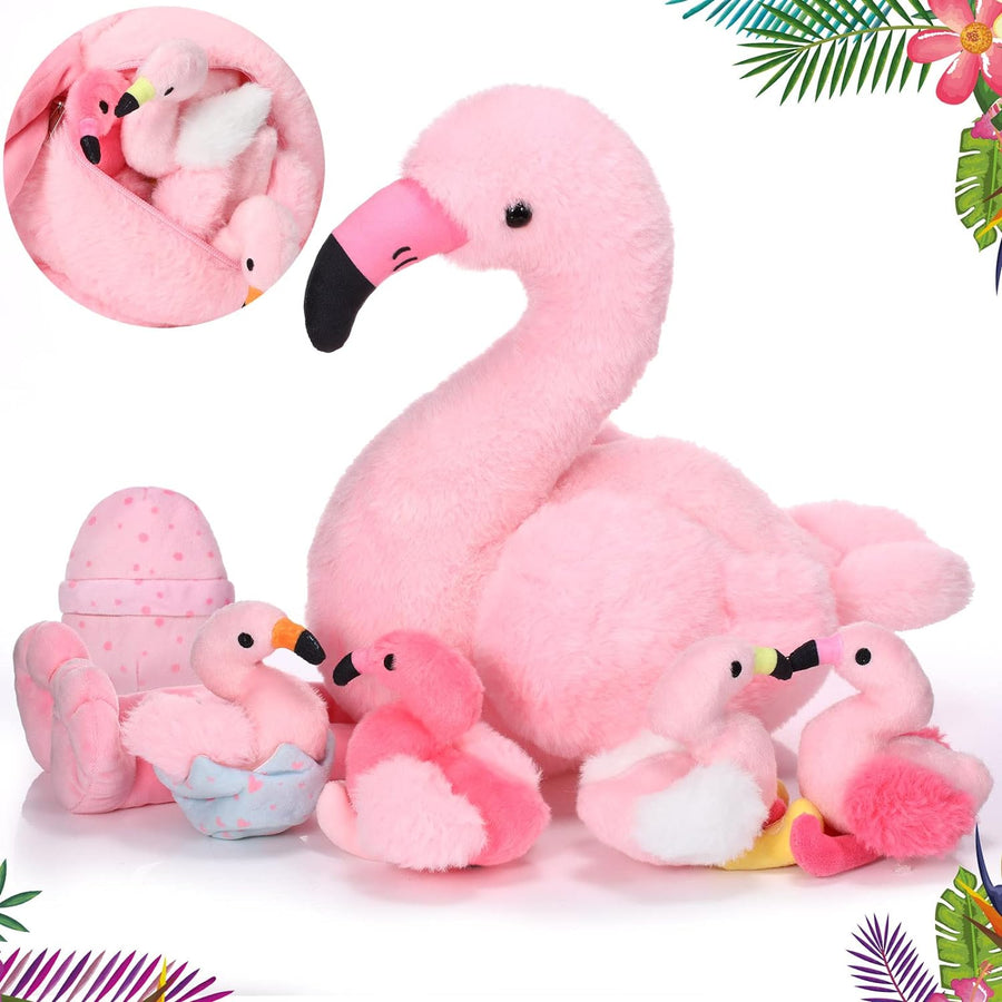 20 Zoll Plüsch Flamingo Stofftier Mami Flamingo mit 4 Baby Flamingo und 1 Flamingo Ei Inneren mit Re