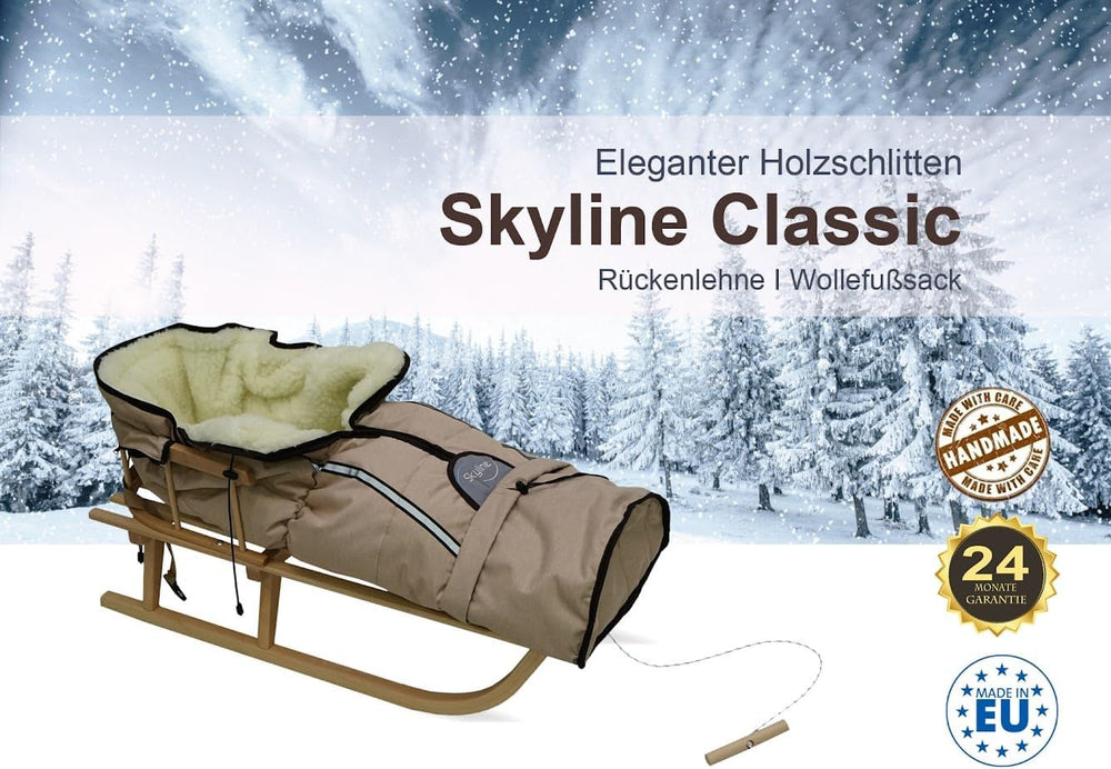 Schlitten aus Holz Holzschlitten für Kinder mit Rückenlehne Rodelschlitten Davoser Schlitten aus Hol