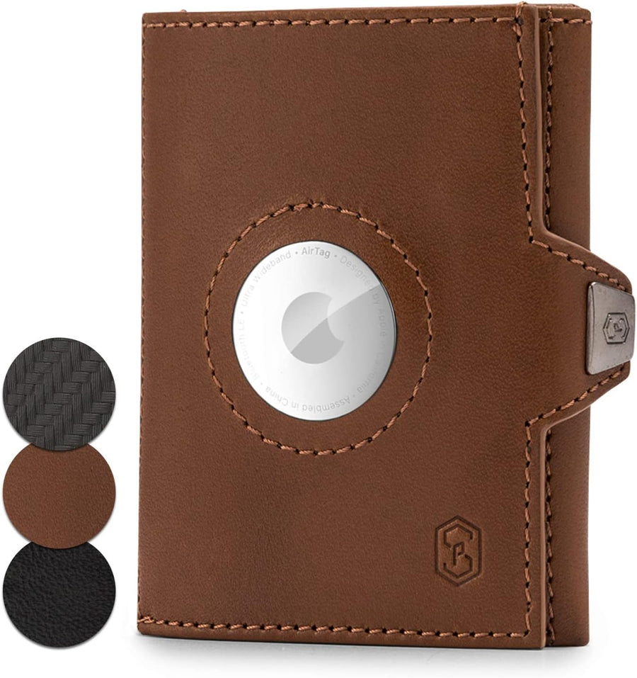 slimpuro Tryo Airtag Wallet, Airtag Geldbörse aus Leder, Geldbörse für Herren Klein mit Münzfach, Kr