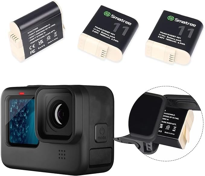Smatree Akku 3-Pack1800mAh Kompatibel für GoPro Hero 12, GoPro Hero 11, GoPro Hero 10 und GoPro Hero