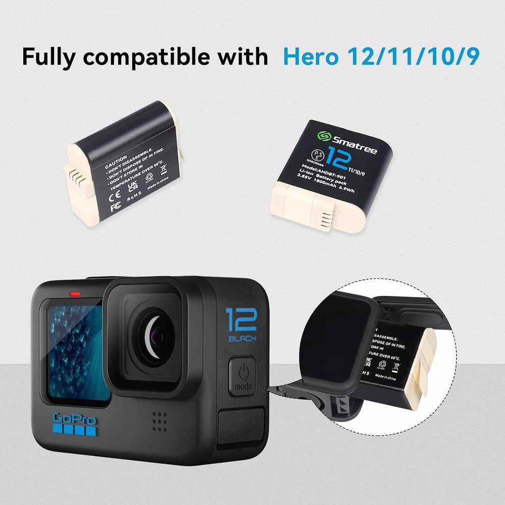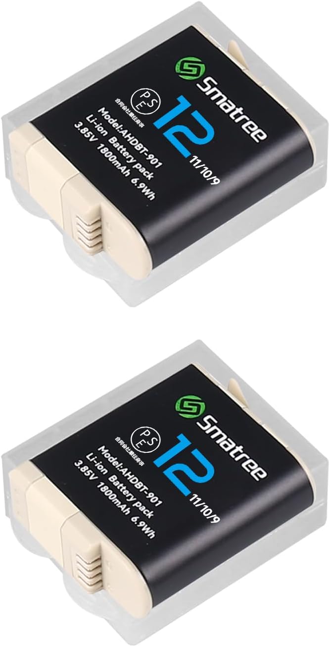 Smatree Akku 2-Pack1800mAh Kompatibel für GoPro Hero 12, GoPro Hero 11, GoPro Hero 10 und GoPro Hero