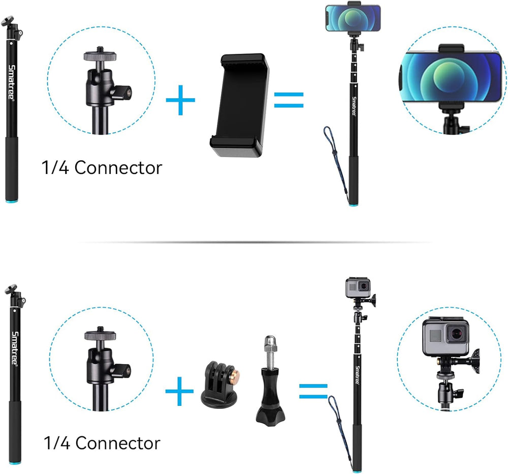 Smatree DS1S Teleskop-Selfie-Stick aus Aluminiumlegierung, kompatibel mit GoPro Hero 10/9/8/7/6/5/4/