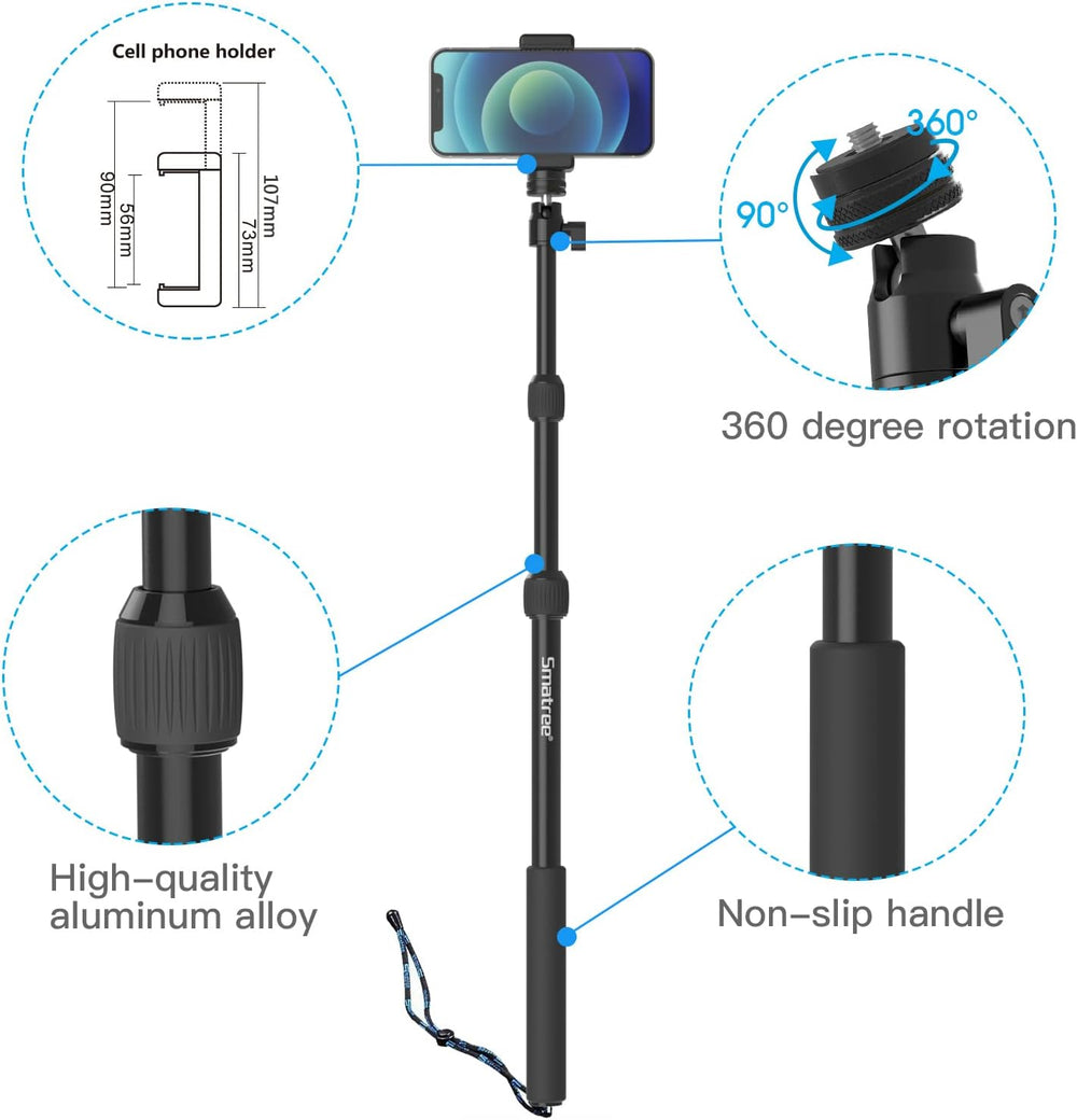 Smatree 70inch(178cm) Aluminiumlegierung ausziehbarer Selfie Stick, Teleskopstange Einbeinstativ für