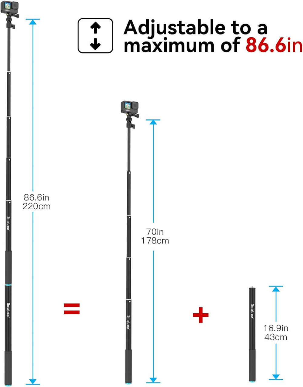 Smatree 220cm SmaPole Extendable Selfie Stick, Teleskopstange für GoPro Fusion, GoPro Hero 12/11/10/