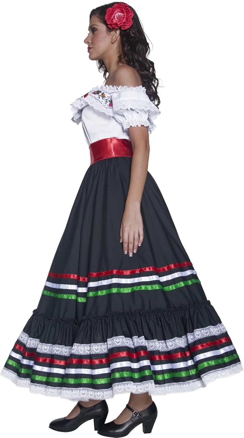 Authentische Western Kollektion Sexy Senorita Kostüm mit Kleid und Schärpe , Large, M