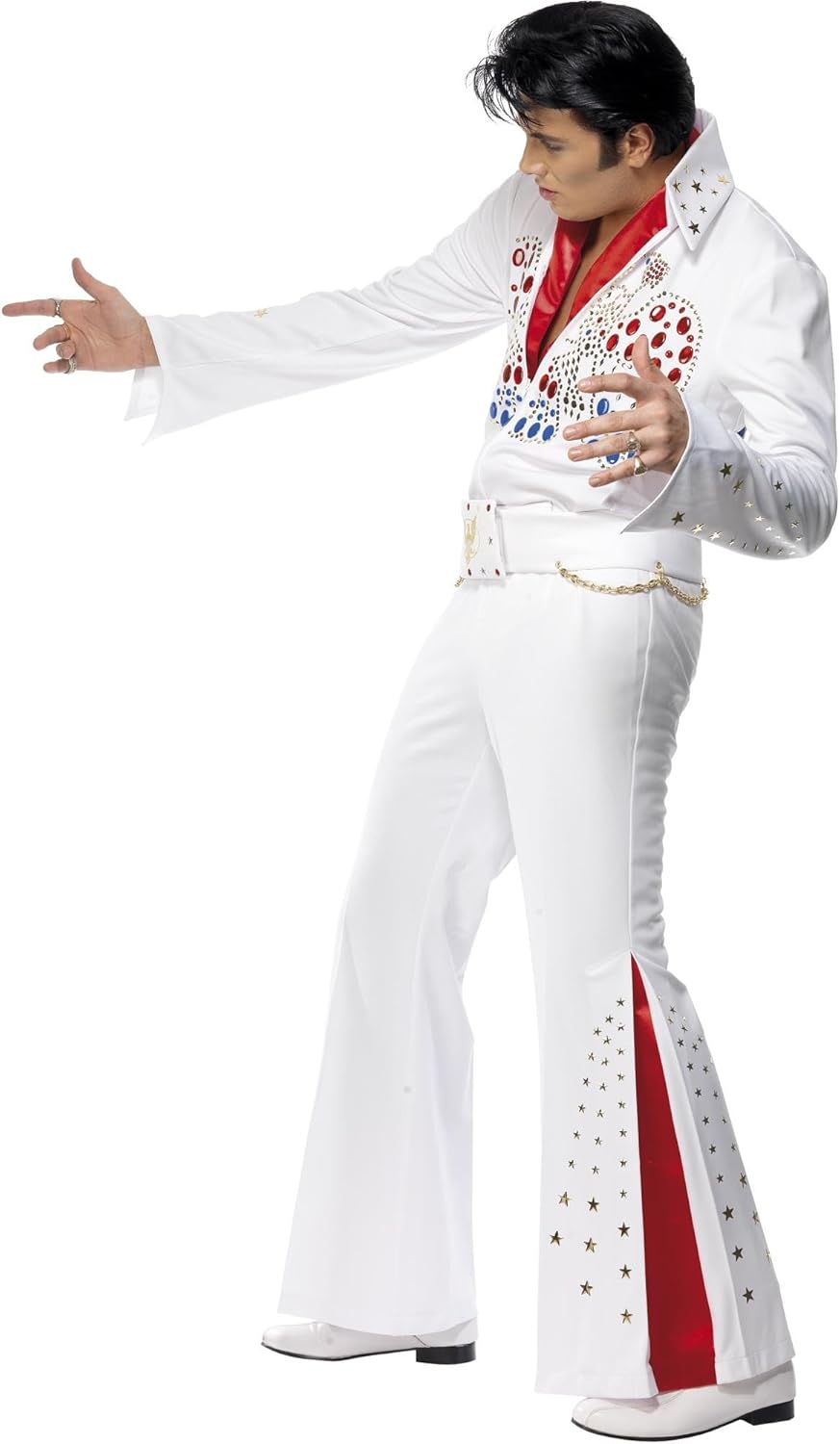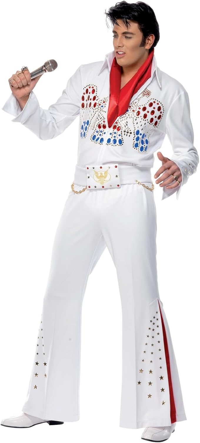 Elvis Kostüm Weiss mit Overall und Schal, Large Medium - 7 bis 9 Jahre, Medium - 7 bis 9 Jahre