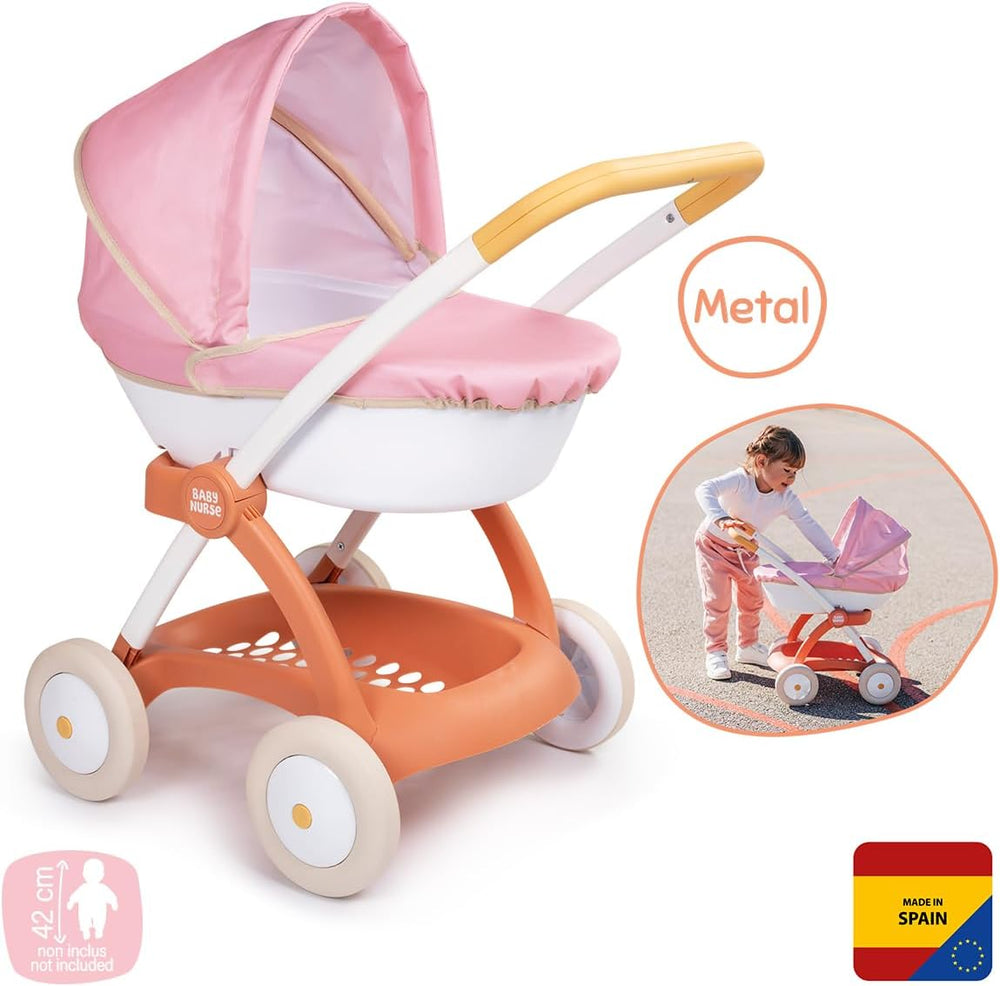 Smoby - Baby Nurse Puppenwagen für Puppen bis 42 cm (Puppe Nicht enthalten) - Abnehmbarer Korb, Meta