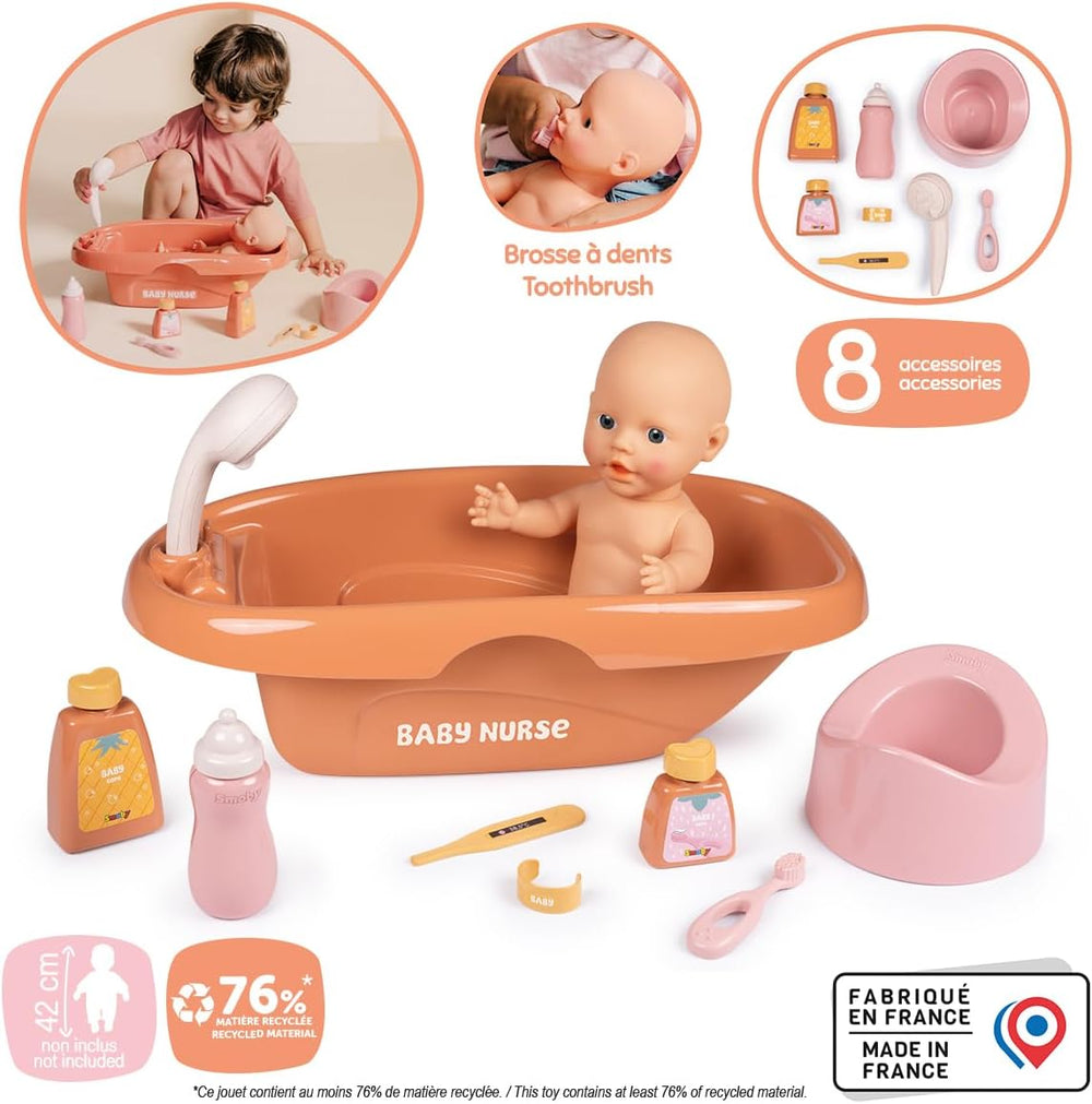 Smoby - Baby Nurse Puppen-Badewanne - Set mit 8 Zubehörteilen - Rollenspiel & Puppenpflege - Puppe N