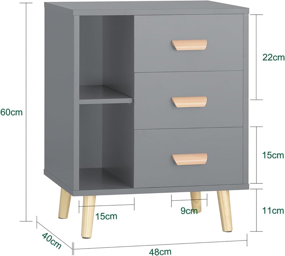 SoBuy FBT95-HG Nachttisch mit 3 Schubladen und 2 offenen Fächern Sofatisch Beistelltisch Telefontisc