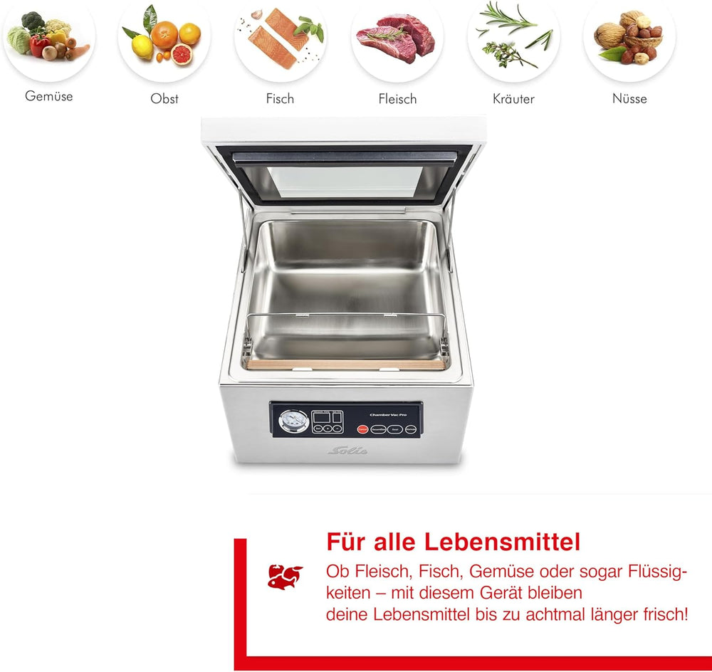 Solis Chamber Vac Pro 5702 Kammervakuumierer - Vakuumiergerät - Für Trockene und Feuchte Lebensmitte