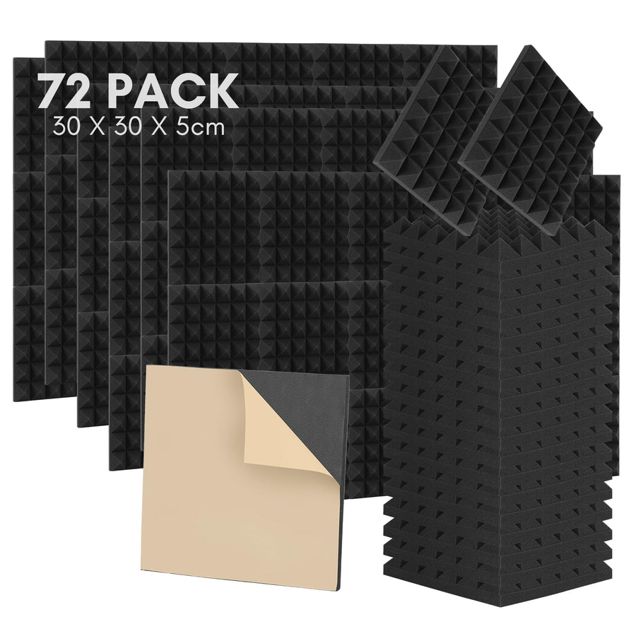 Sonnewelt Akustikschaumstoff Selbstklebend 72 Stücke 5x30x30 cm 3D Hochdichte Schallabsorber Wand Ha