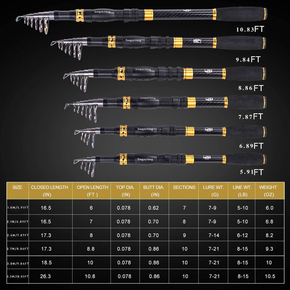 Sougayilang Angelruten- und Rollen-Kombinationen - Teleskop-Angelrute aus Kohlefaser - Spinnrolle 12