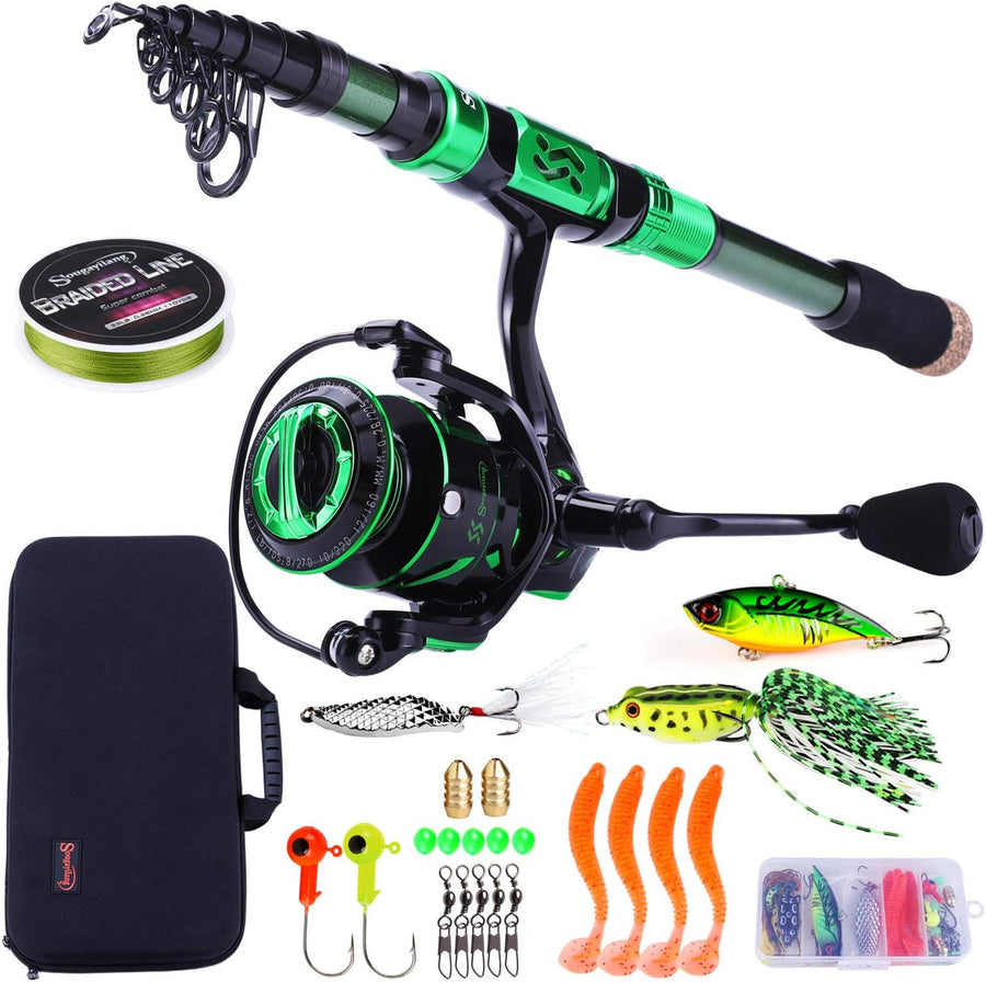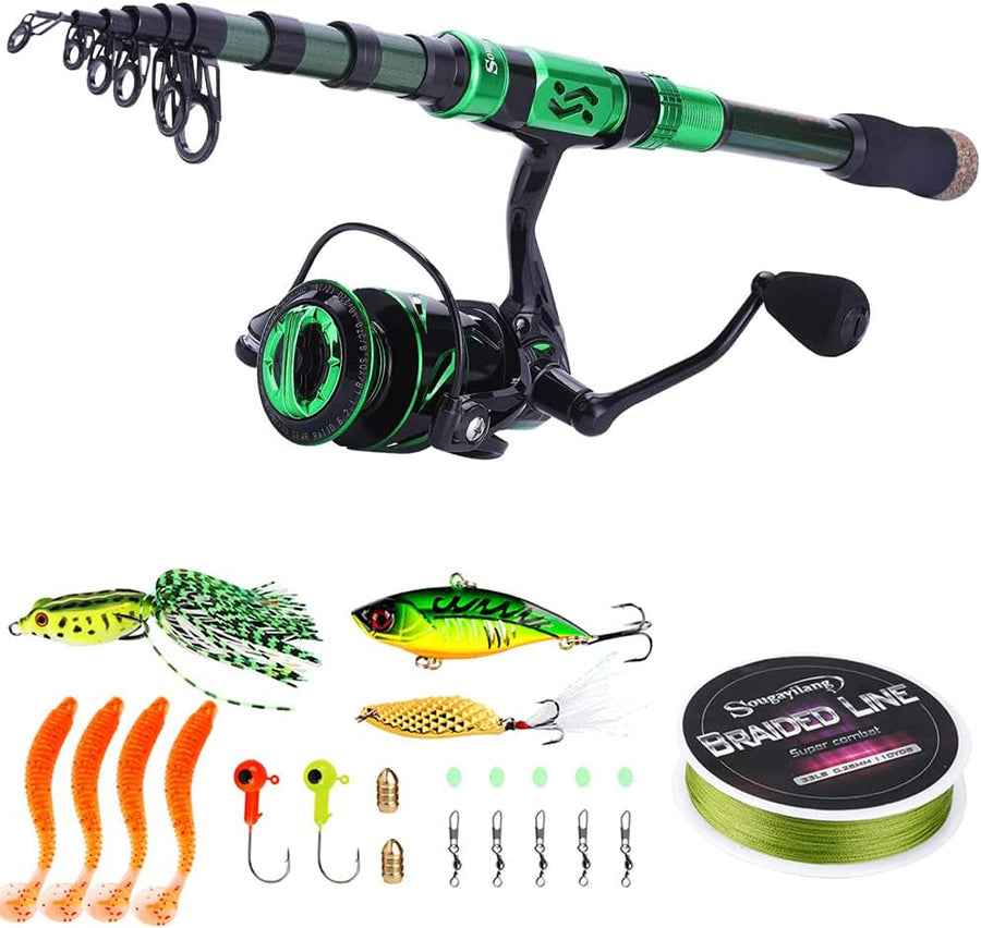 Sougayilang Angelrute und Rolle Combos, Kohlefaser Teleskop Angelrute 12 +1 BB Spinning Reel mit Tra