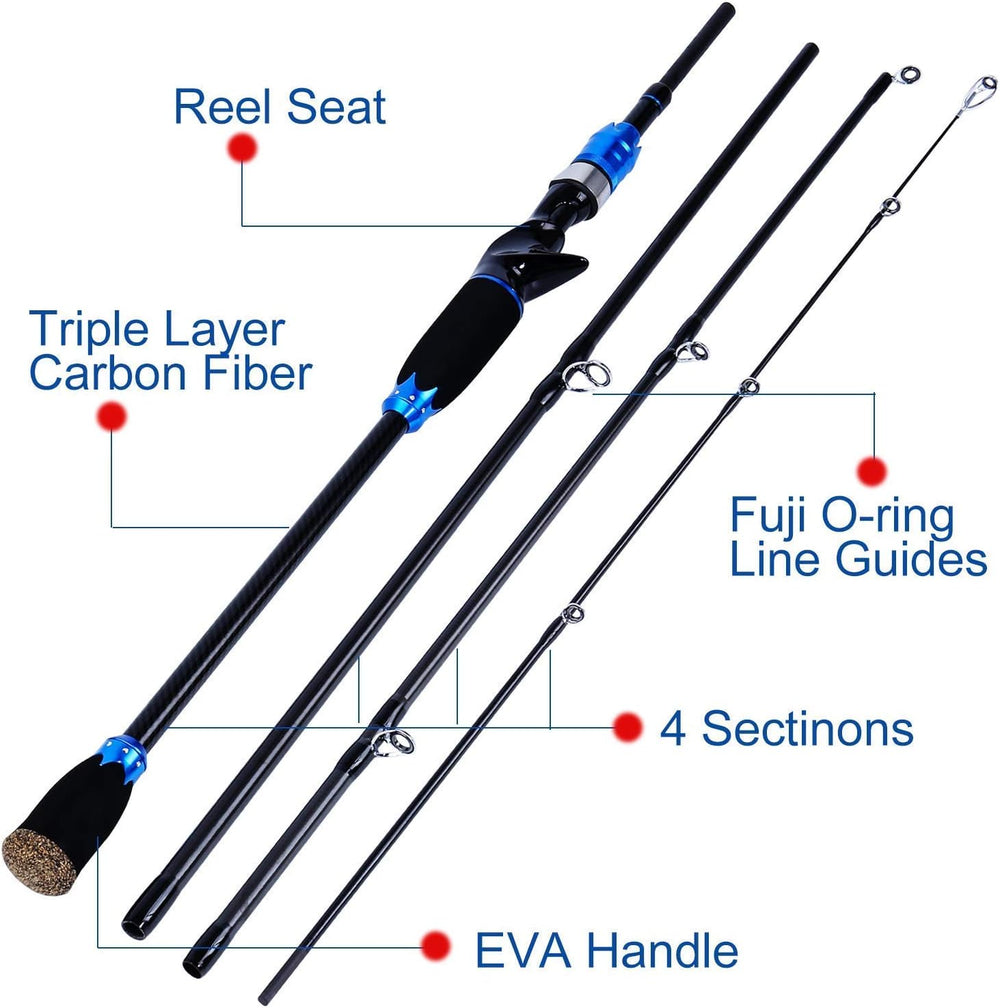 Sougayilang Angelrolle und Ruten-Kombos, 24 Tonnen Kohlefaser-Angelruten mit Ködergussrolle, 7.0:1 A