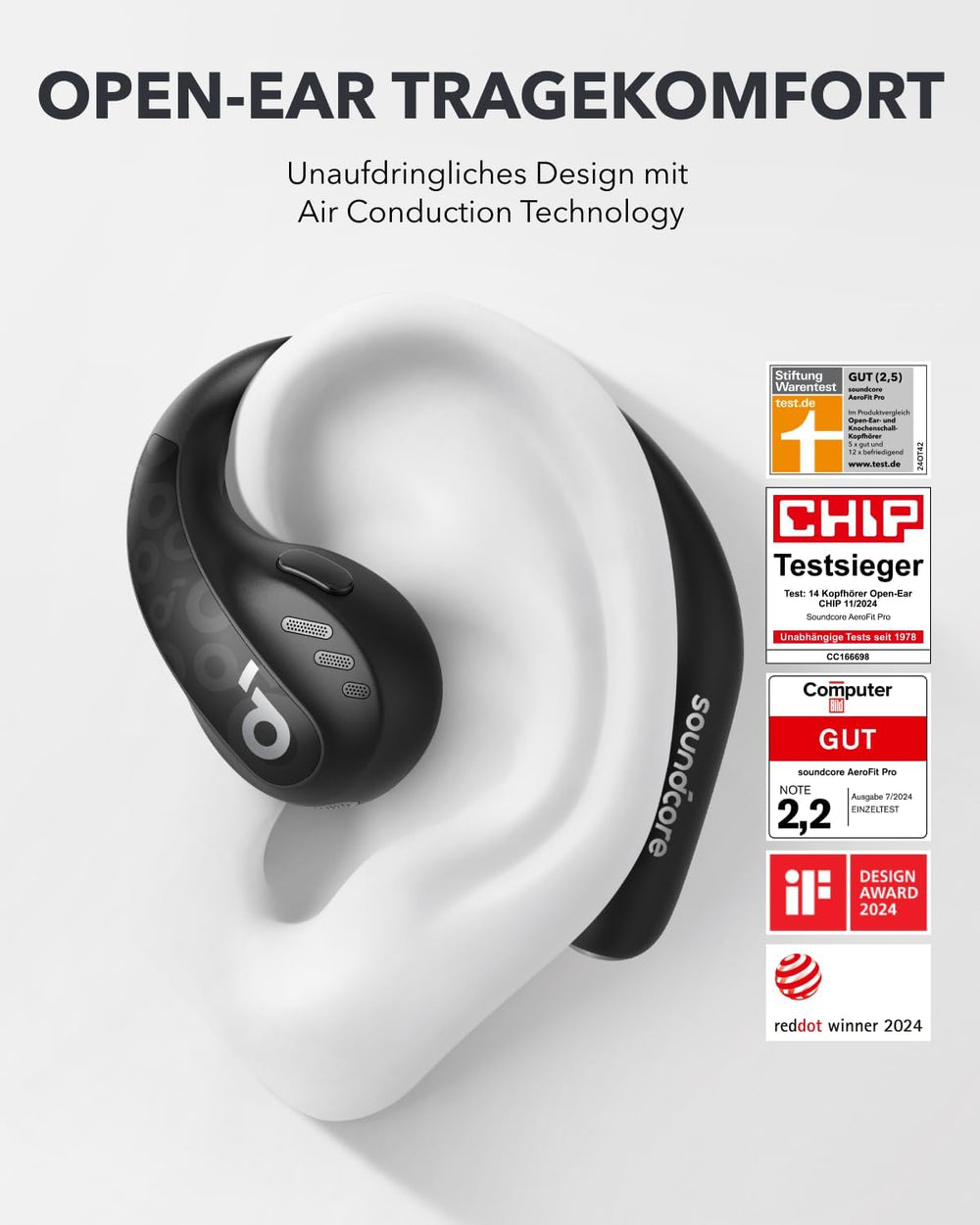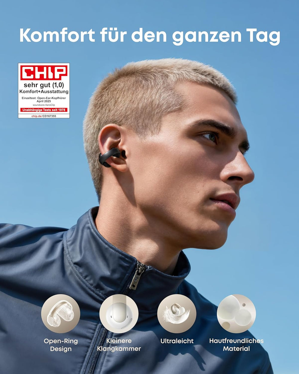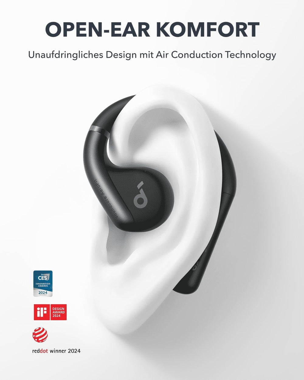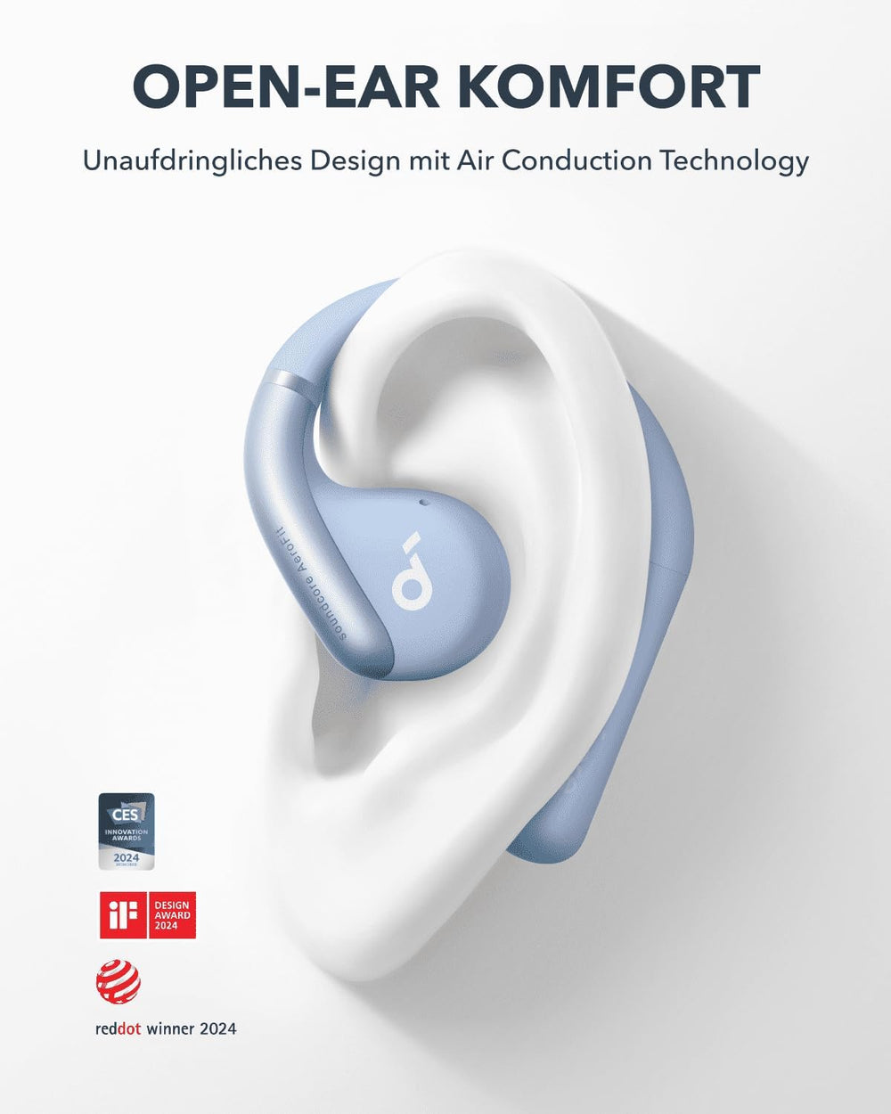 soundcore AeroClip by Anker, Open-Ear Kopfhörer, Bluetooth Earbuds, Open Earbuds, ganztägiger Komfor