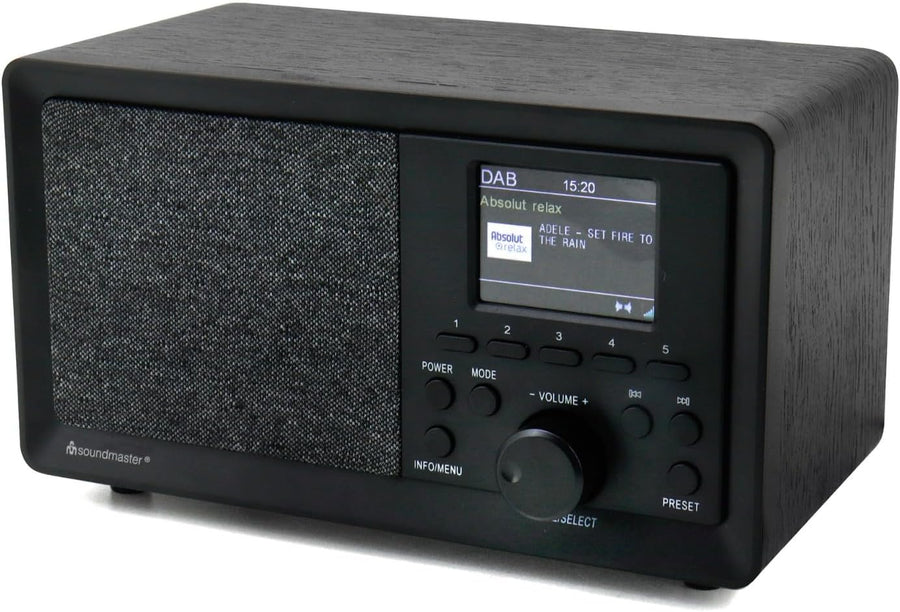 soundmaster DAB350SW Tischradio DAB+, UKW USB Inkl. Lautsprecherbox, Weckfunktion Schwarz
