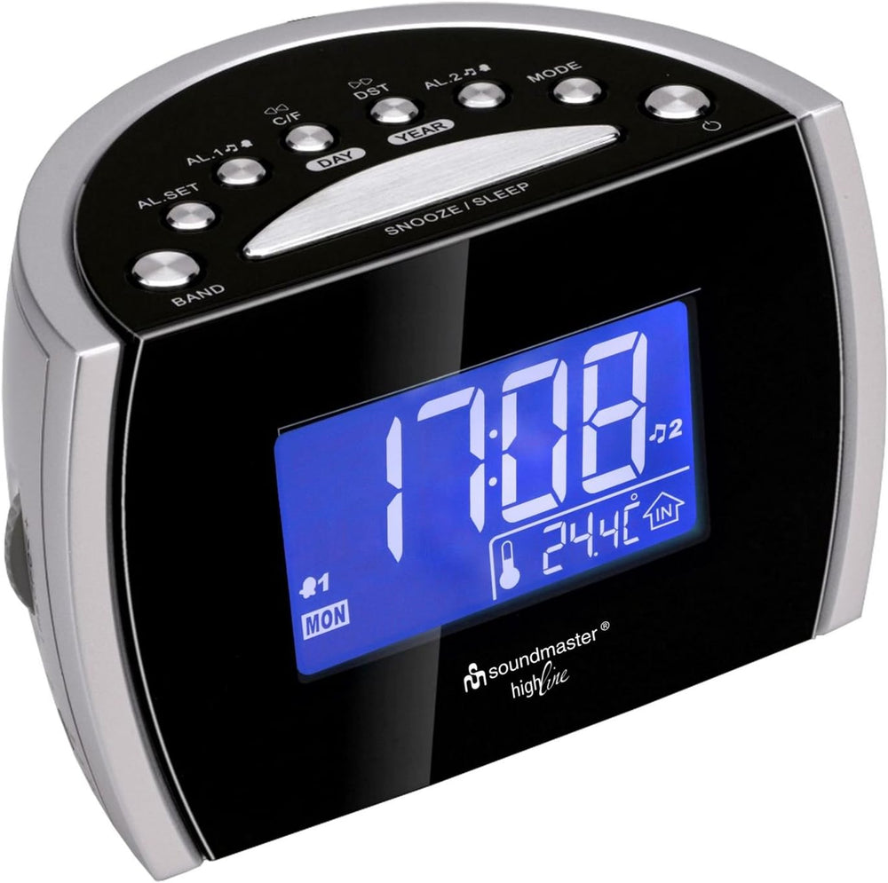 Soundmaster UR108 Uhrenradio mit Dualalarm/Temperaturanzeige/Dimmer/Aux-IN