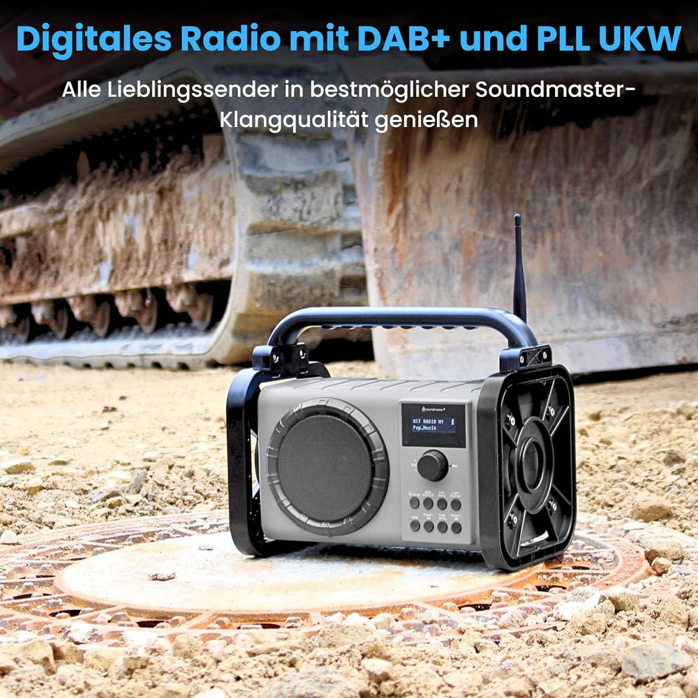 Soundmaster DAB80SG Baustellenradio mit DAB+ UKW Bluetooth und Li-Ion Akku IP44 Staub- und spritzwas