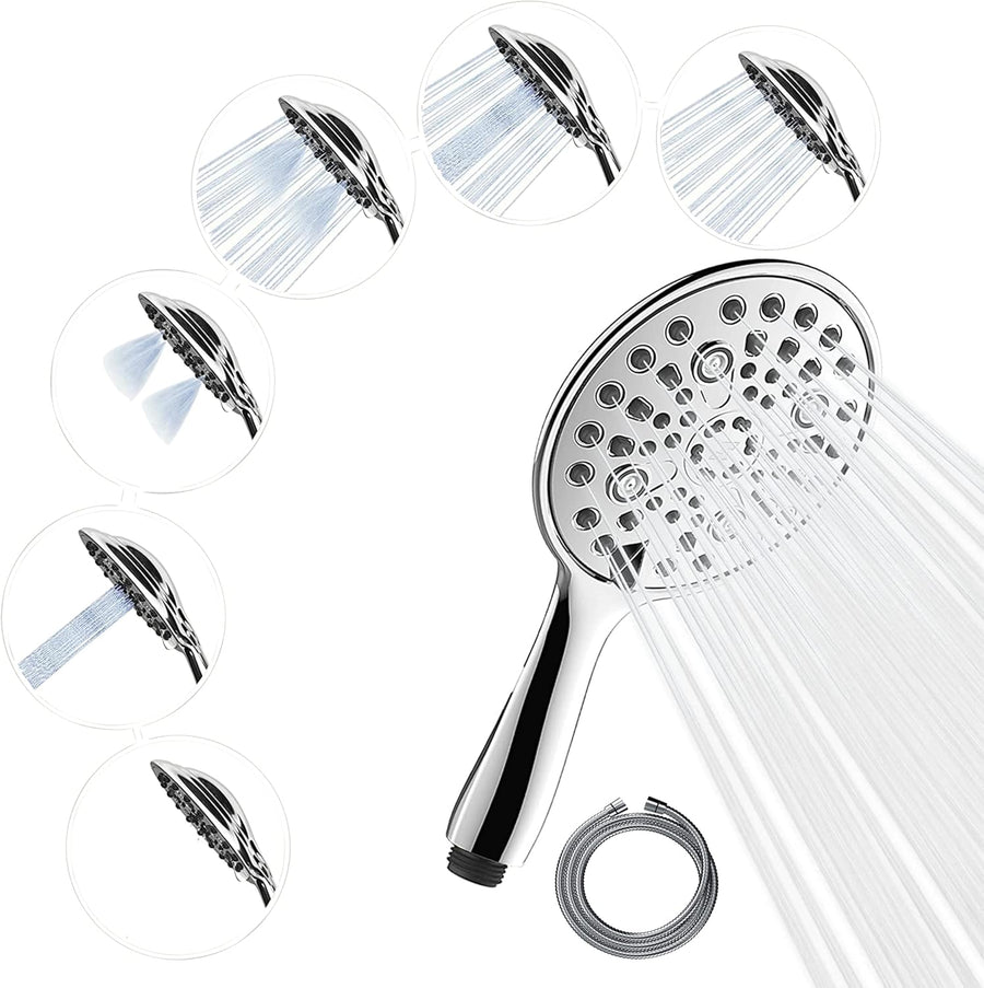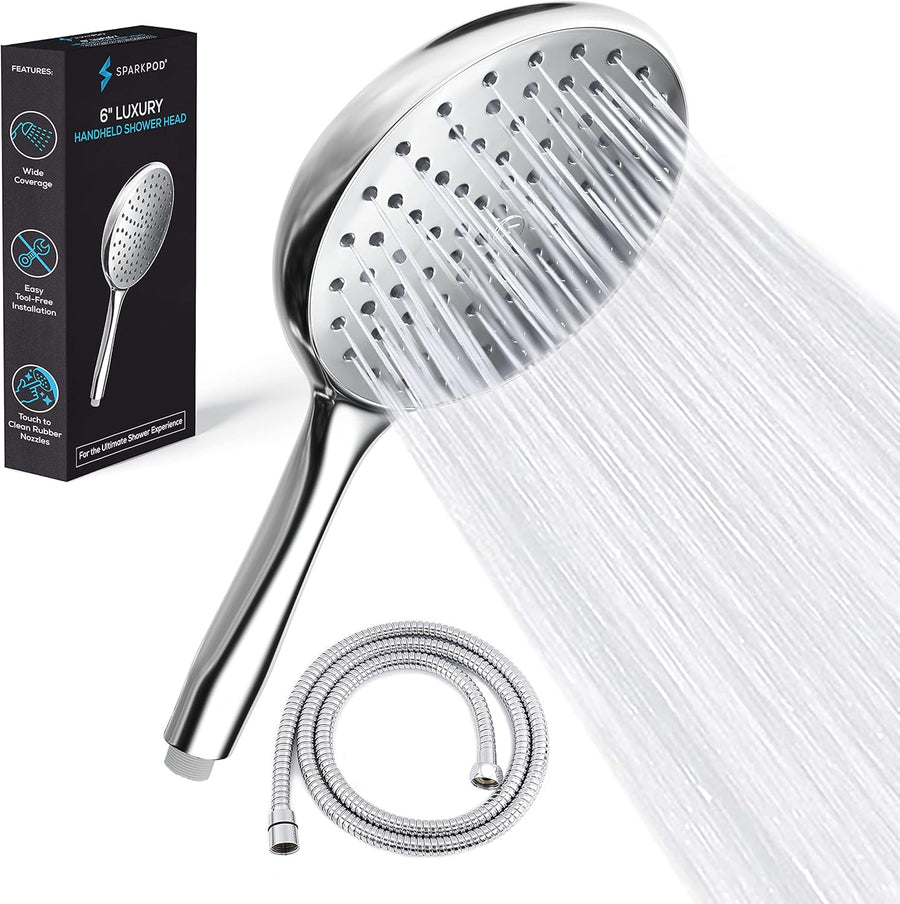 SparkPod 6-Function High Pressure Shower Head - 6" Wide Angle Handheld Shower Head Set with Brass Sw