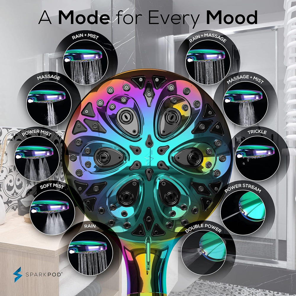 Sparkpod 10-Setting High Pressure Shower Head - Luxury 5" High Flow Hand Held Shower Head with High