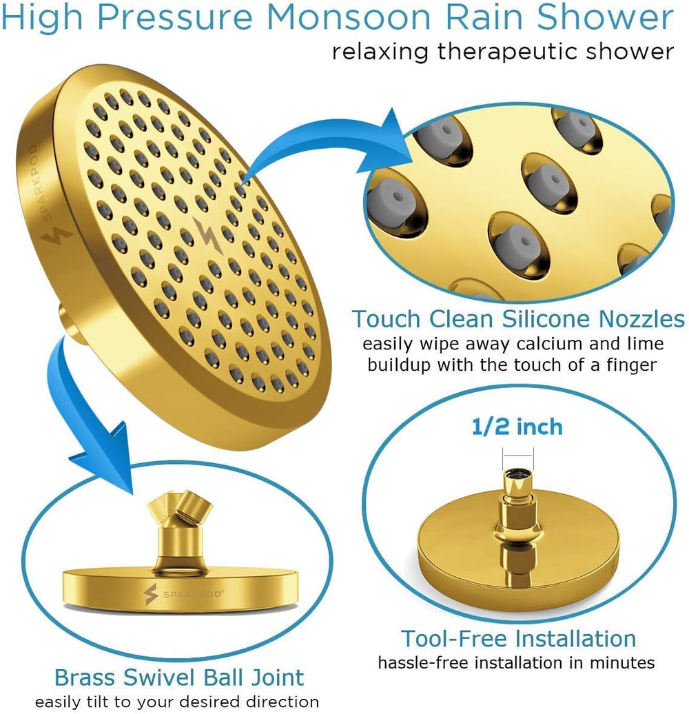 SparkPod Duschkopf – Hochdruckregen – Luxuriöser Look - Werkzeuglose 1-Minuten Installation - Verste
