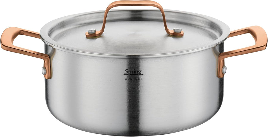 Spring Bratentopf GOURMET, mehrschichtiger Kochtopf mit Deckel aus Edelstahl, backofengeeignet, mit