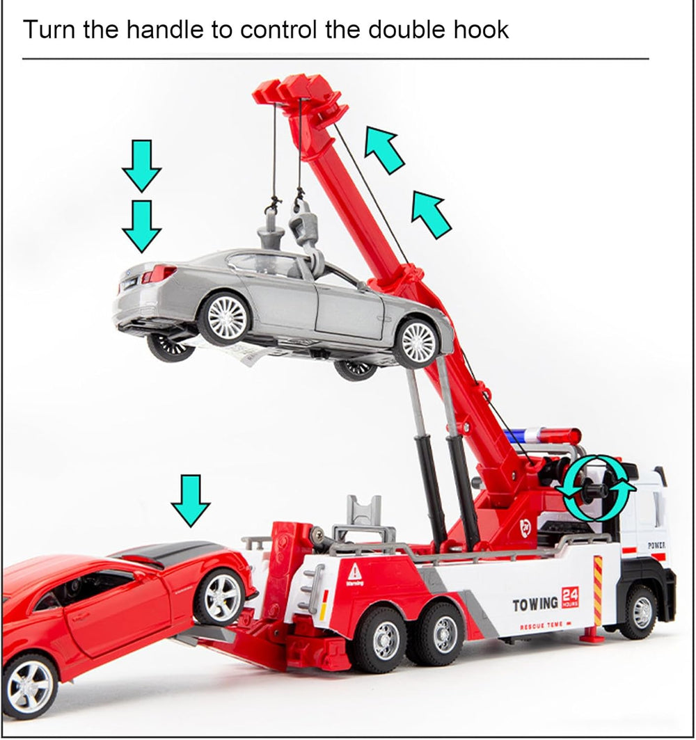 Srliya 1:32 Kran-LKW-Spielzeug Kinder, Sound-Licht, 360 Grad Drehbarer Arm, 2 Haken, Technisches Sch
