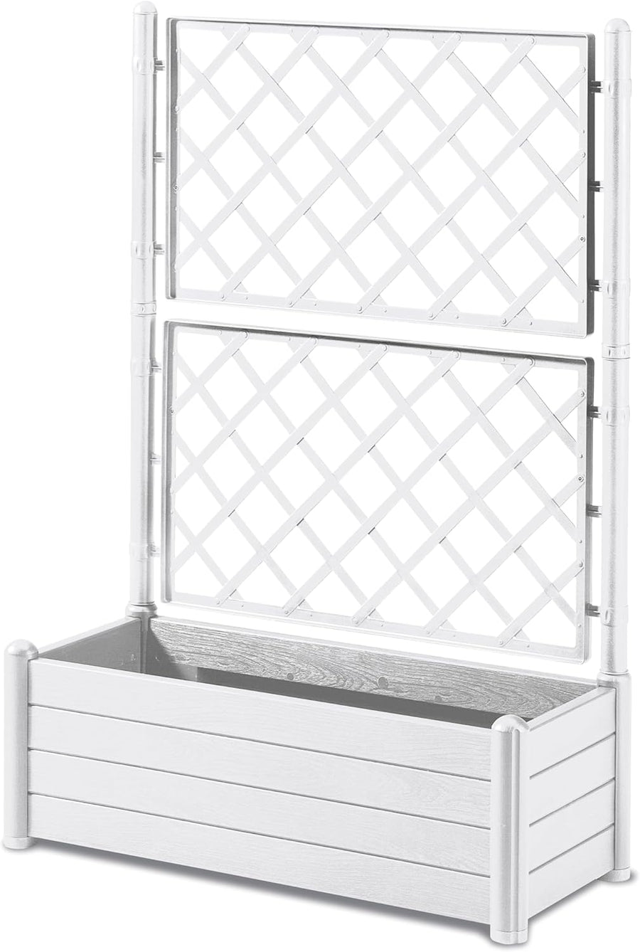 Stefanplast Blumenkasten, rechteckig, mit Spalier, Holz-Finish, 100 x 43 x 35 cm, 80 l, Weiss