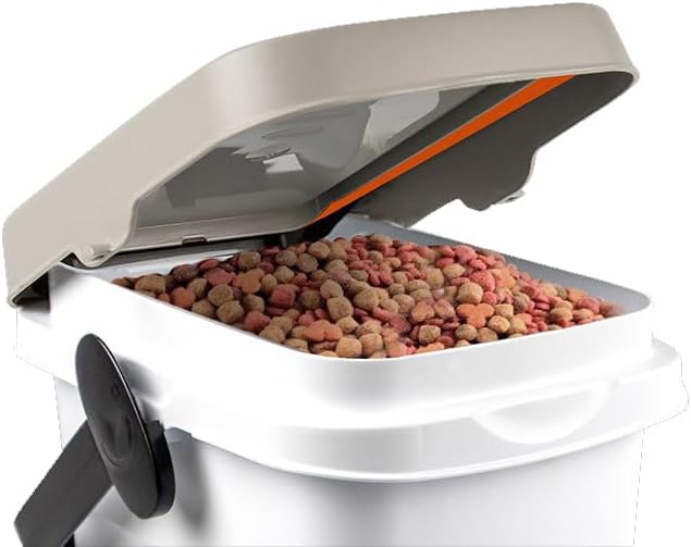 Petfood-Container, luftdichte Aufbewahrung von Trockenfutter, Vorratsbehälter Tierfutter, Weiss / Br