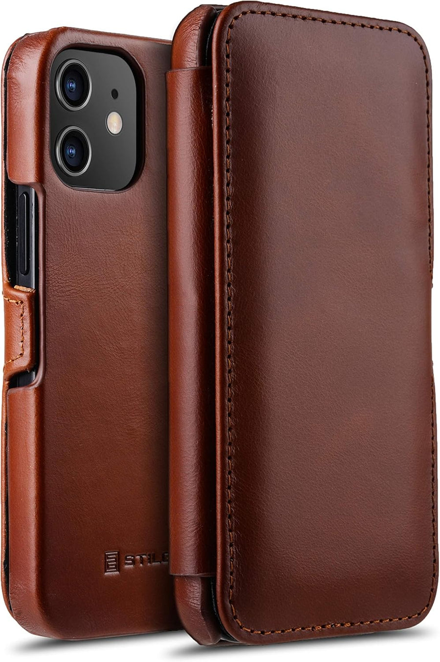 STILGUT Book Case kompatibel mit iPhone 12 Mini (5.4“) Hülle aus Leder mit Clip-Verschluss, Klapphül