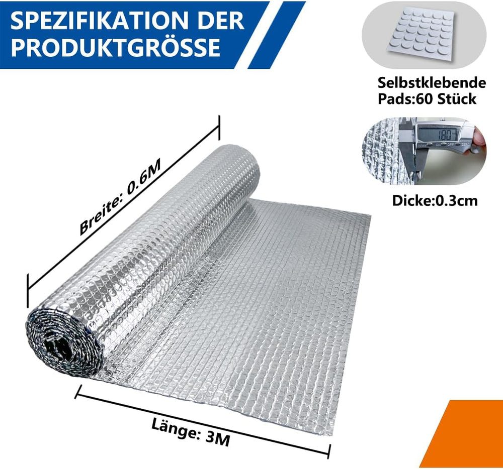 Storystore Aluminisierte Isolierfolie 60cm x 3m, 3mm Dicke Isolierung Dämmfolie Doppelseitige Alu-Lu