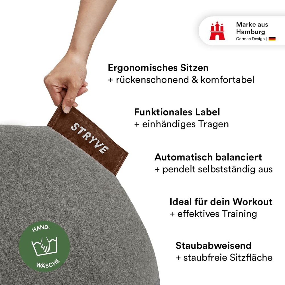 STRYVE Active Ball Wollfilz, innovativer Sitzball mit Filzbezug, Alternative zum Bürostuhl, inkl. Lu