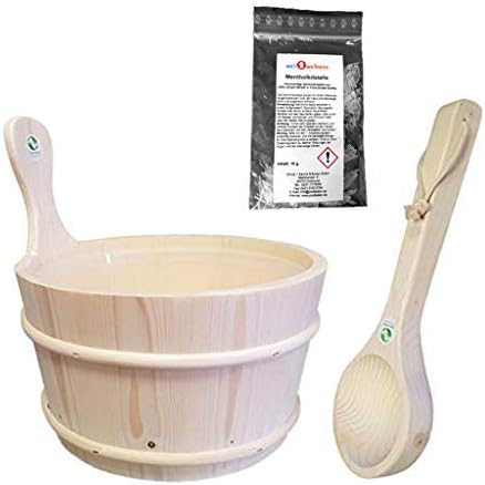 SudoreWell® Saunakübel Saunaeimer aus Espenholz 4,0 l inkl. Einsatz Plus 10g Mentholkristalle
