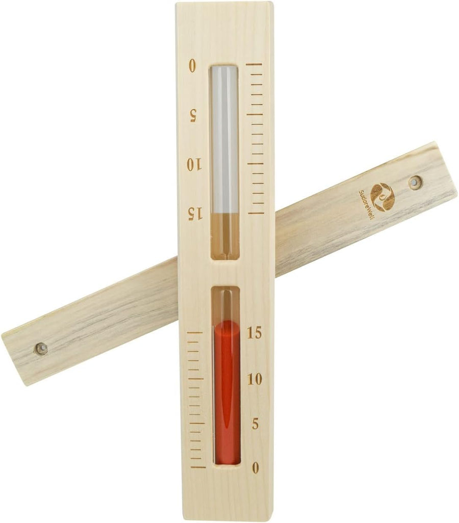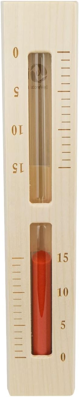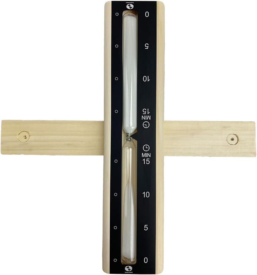 SudoreWell® Sauna Sanduhr Premium 15 Minuten aus Kiefernholz mit Bügel und rotem Sand