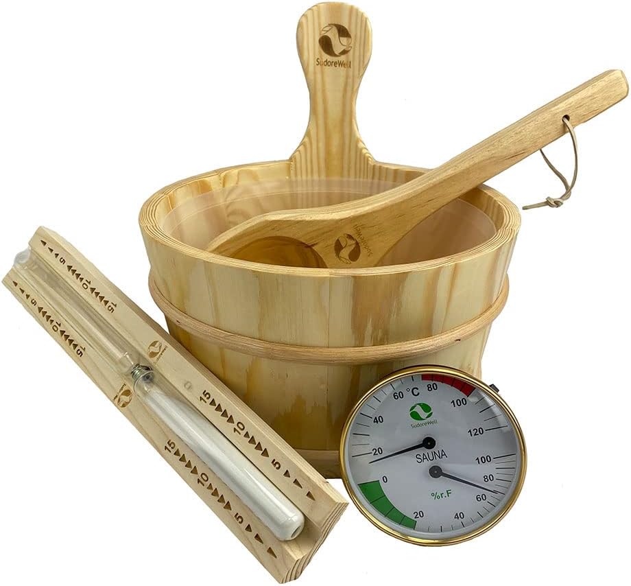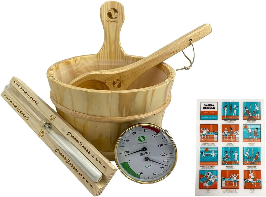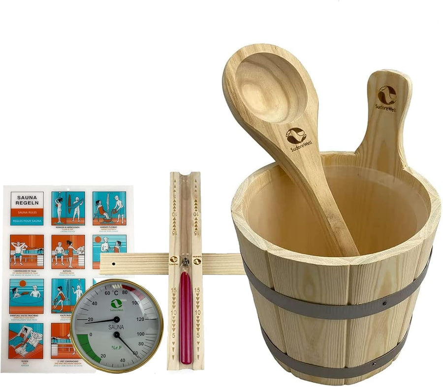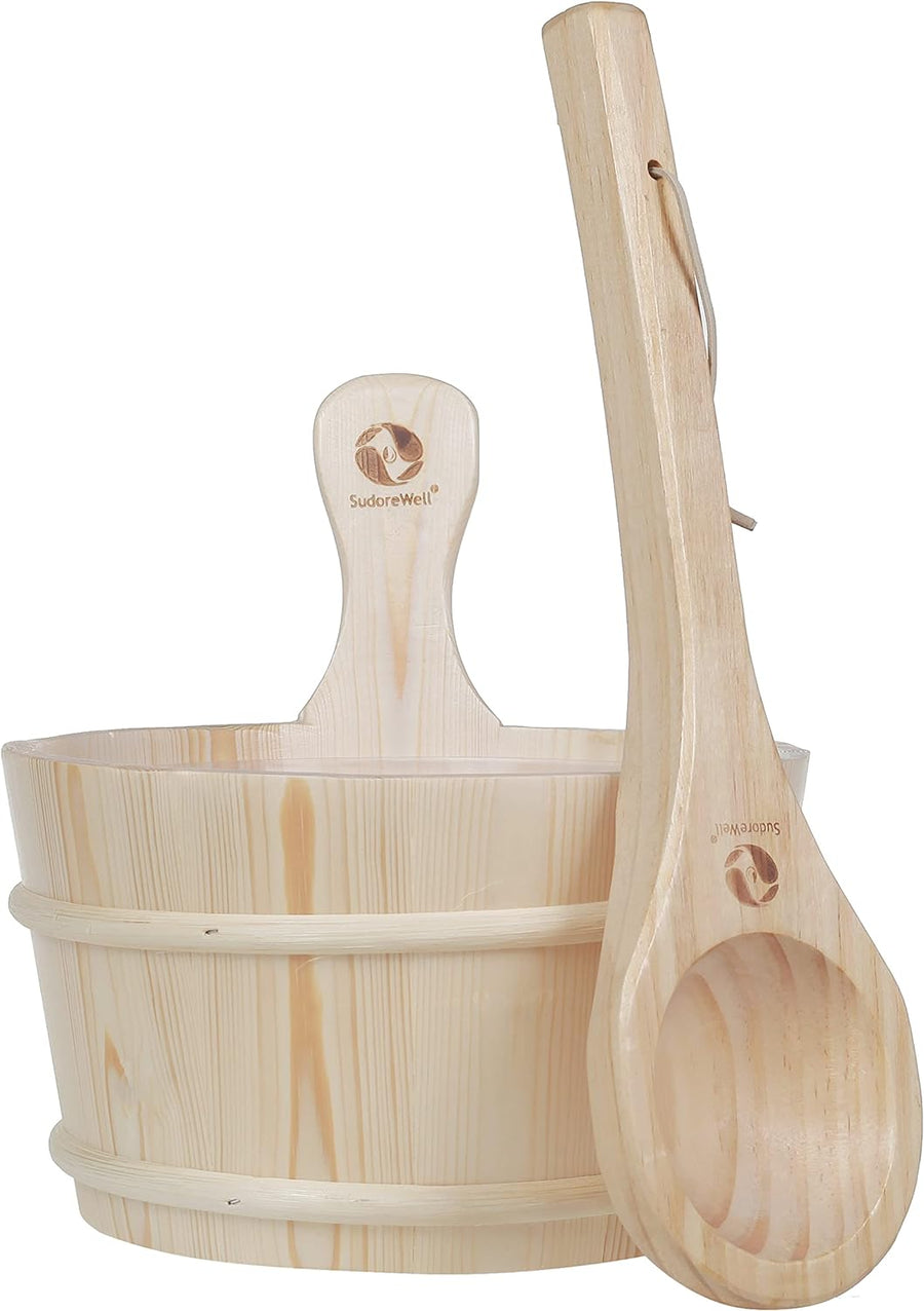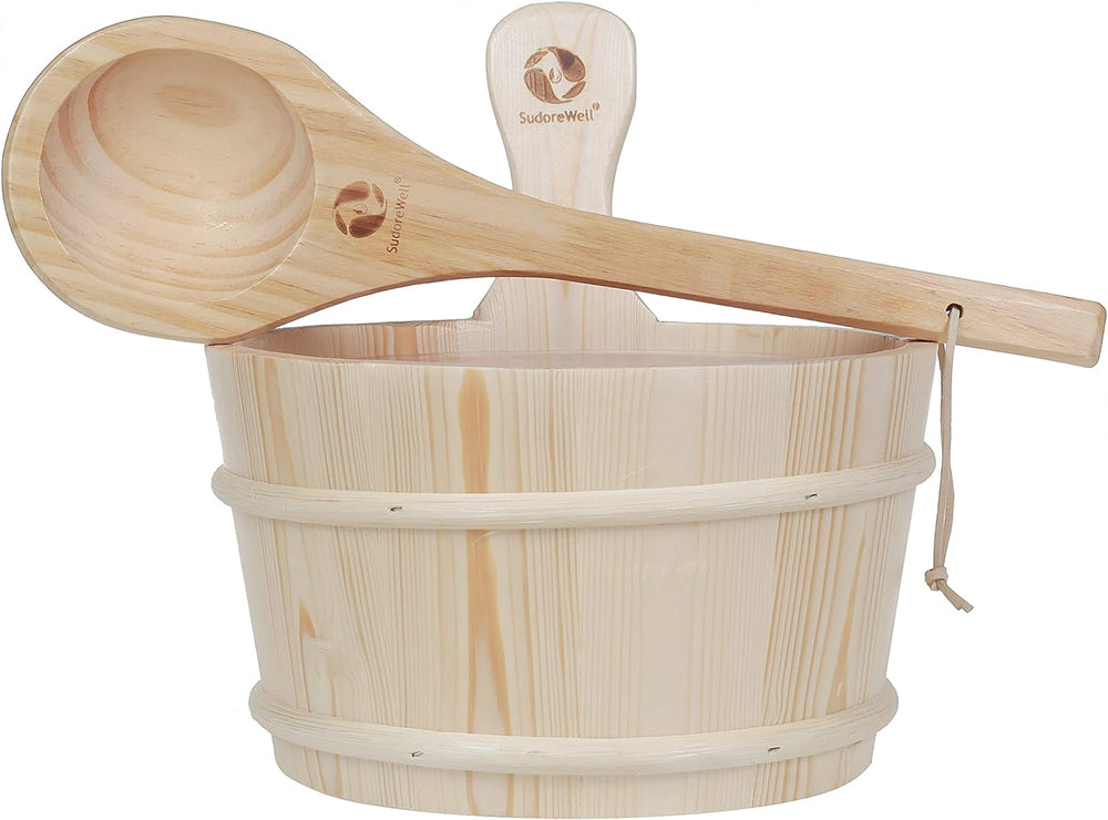 SudoreWell® Saunakübel Saunaeimer Set 4l aus hochwertigem Kiefernholz plus