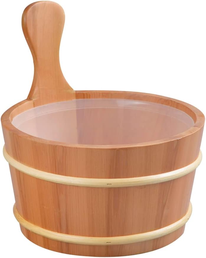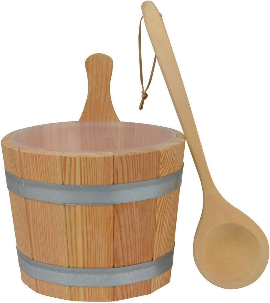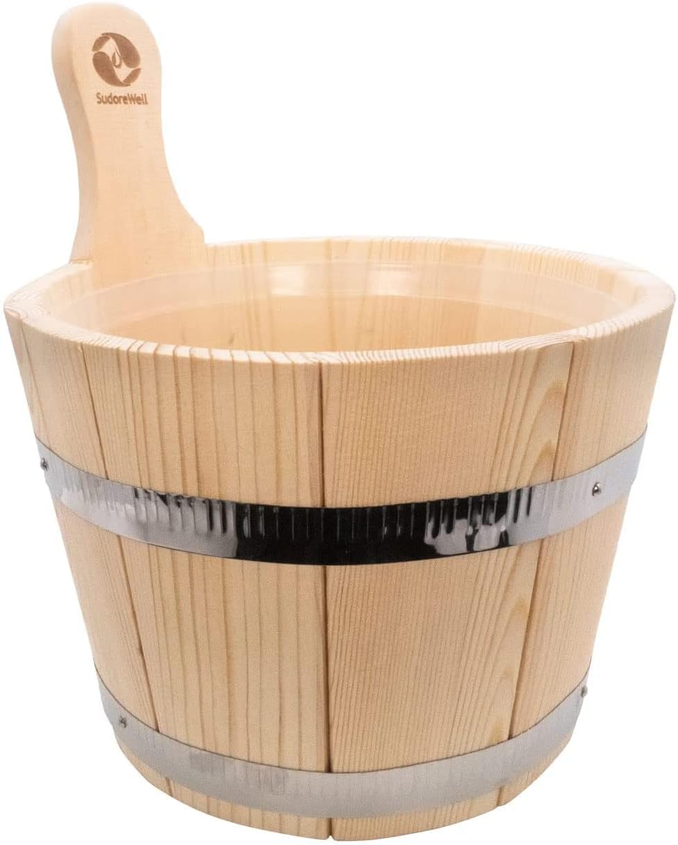 SudoreWell® Saunakübel Set 5 Liter aus Kiefernholz mit Kunststoffeinsatz und zwei Stahlbandreifen pl