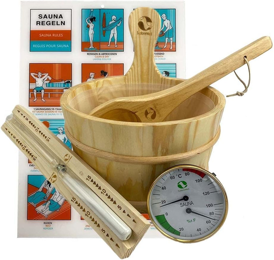 Klassisches Sauna-Zubehörset 5-teilig, Sauna-Set aus naturbelassenem
