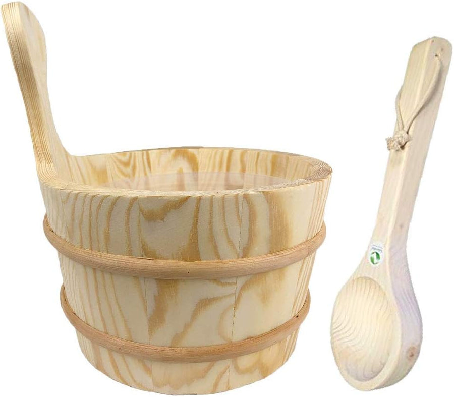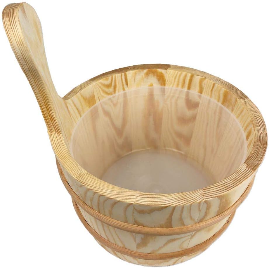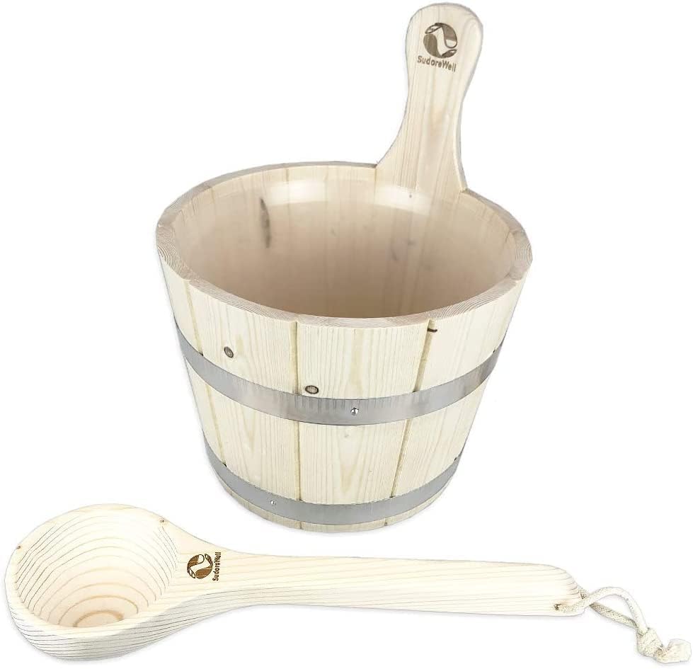SudoreWell Saunakübel Saunaeimer aus Kiefernholz 4 l mit Einsatz und Saunakelle