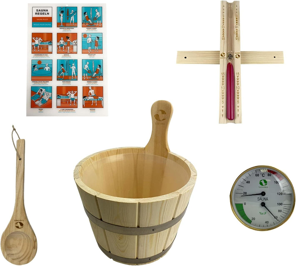 Sauna Zubehör Set Premium 5.0 Saunaset 6-teilig aus Kiefernholz