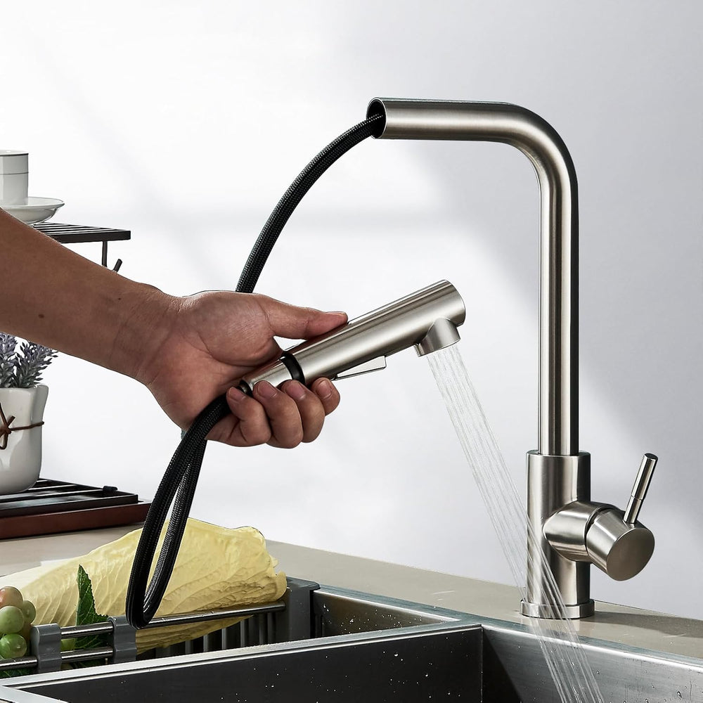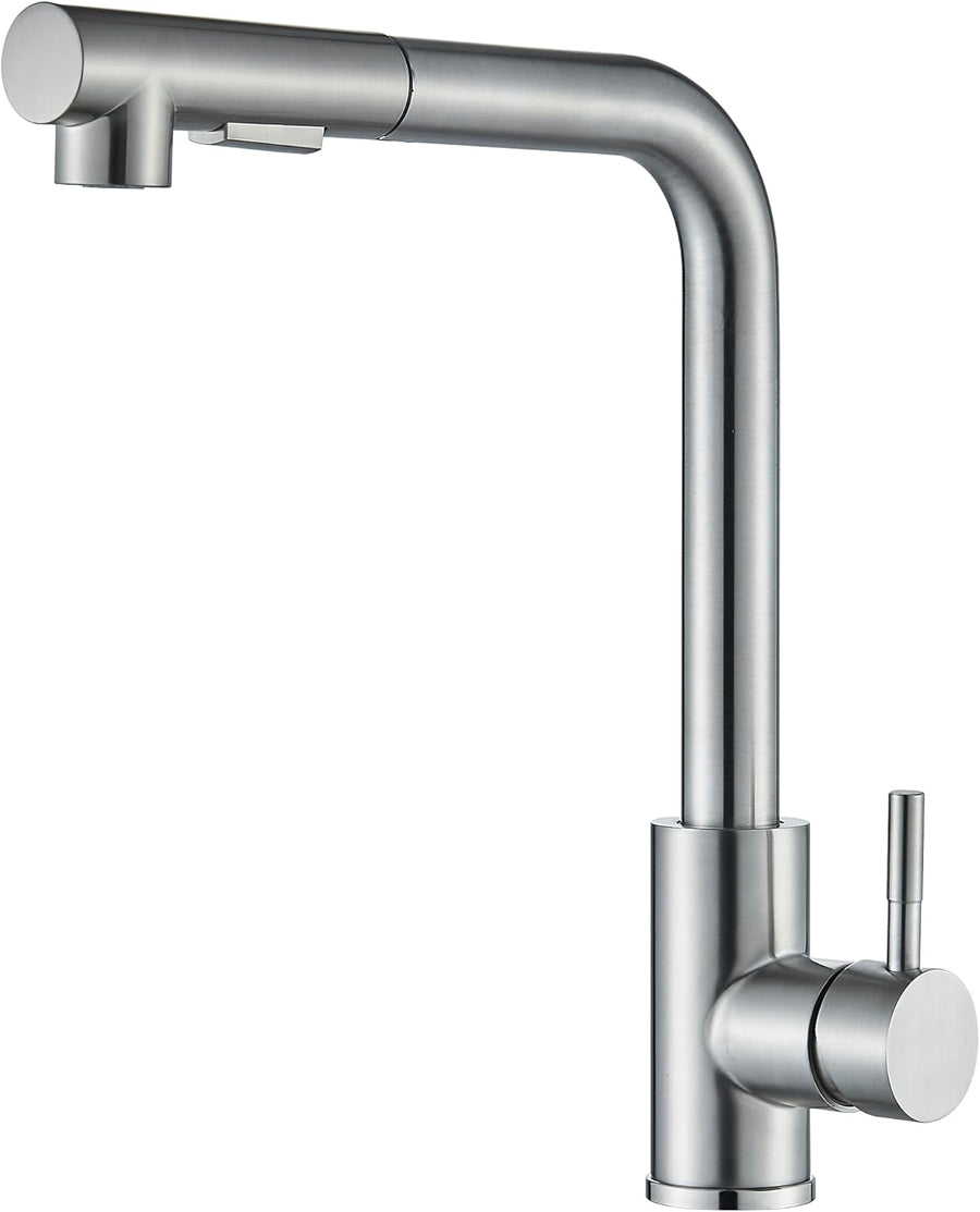 Wasserhahn Küche Edelstahl Küchenarmatur Mischbatterie mit Brause Ausziehbar Hochdruck 360° Schwenkb