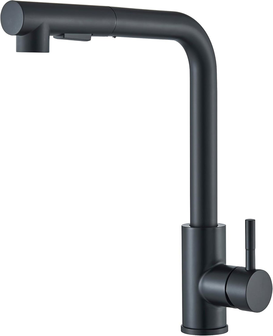 Wasserhahn Küche Schwarz Küchenarmatur Mischbatterie mit Brause Ausziehbar Hochdruck 360° Schwenkbar