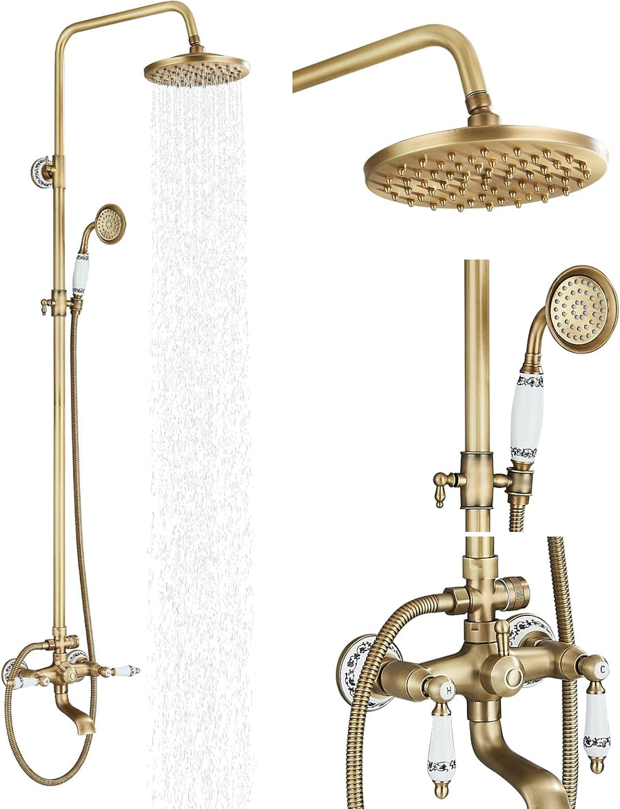 Suguword Messing Duscharmatur Duschset Duschsystem Regenduschset mit Kopfbrause Handbrause Duschkopf
