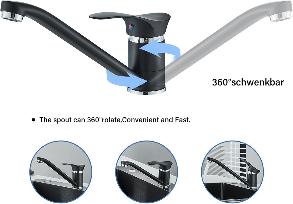 Suguword Niederdruck Küchenarmatur Schwarz Spültischarmatur Küche Armatur Wasserhahn 360° Schwenkbar