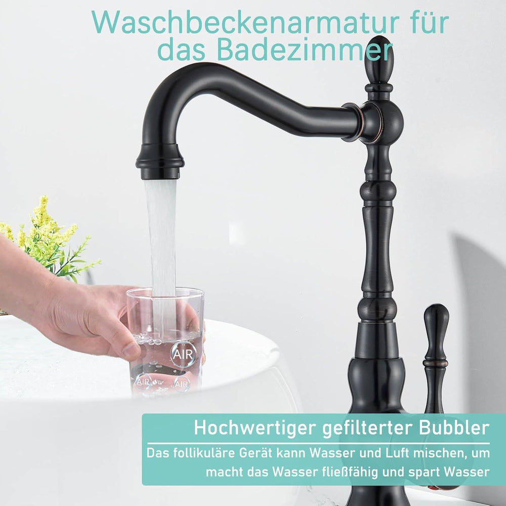 Suguword Schwarz Antikes Retro Einhebelmischer Bad Wasserhahn Waschtisch Armatur mit 360 ° schwenkba