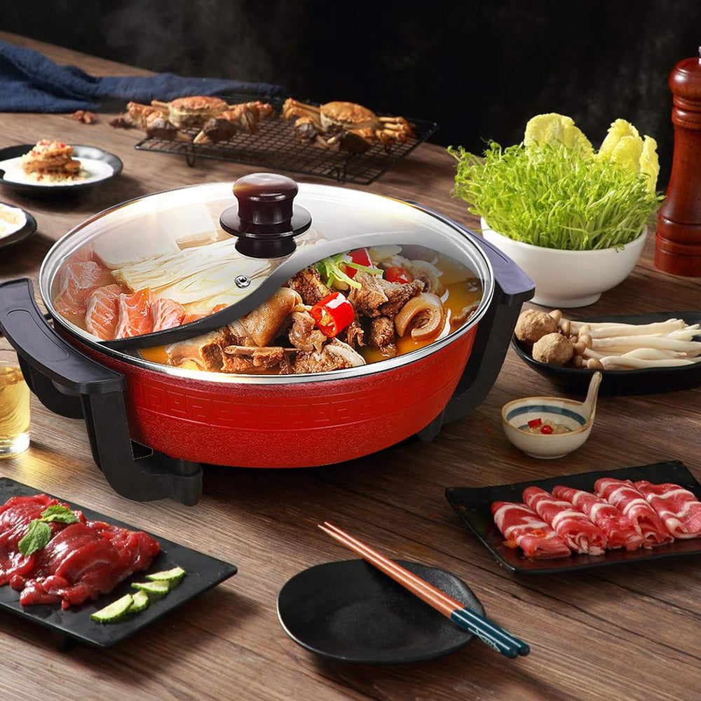 Hot Pot, Hotpot 1300W 220V, Hot Pot Elektrisch 2 Seiten Suppentopf Küche Antihaft Kochtopf Chinesisc