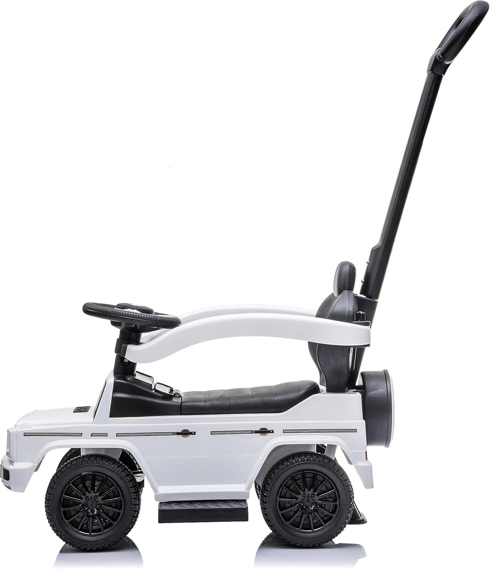 Rutschauto ab 1 Jahr mit Schubstange, Mercedes G mit Schubstange, Kinderauto, Baby Auto (Weiss)
