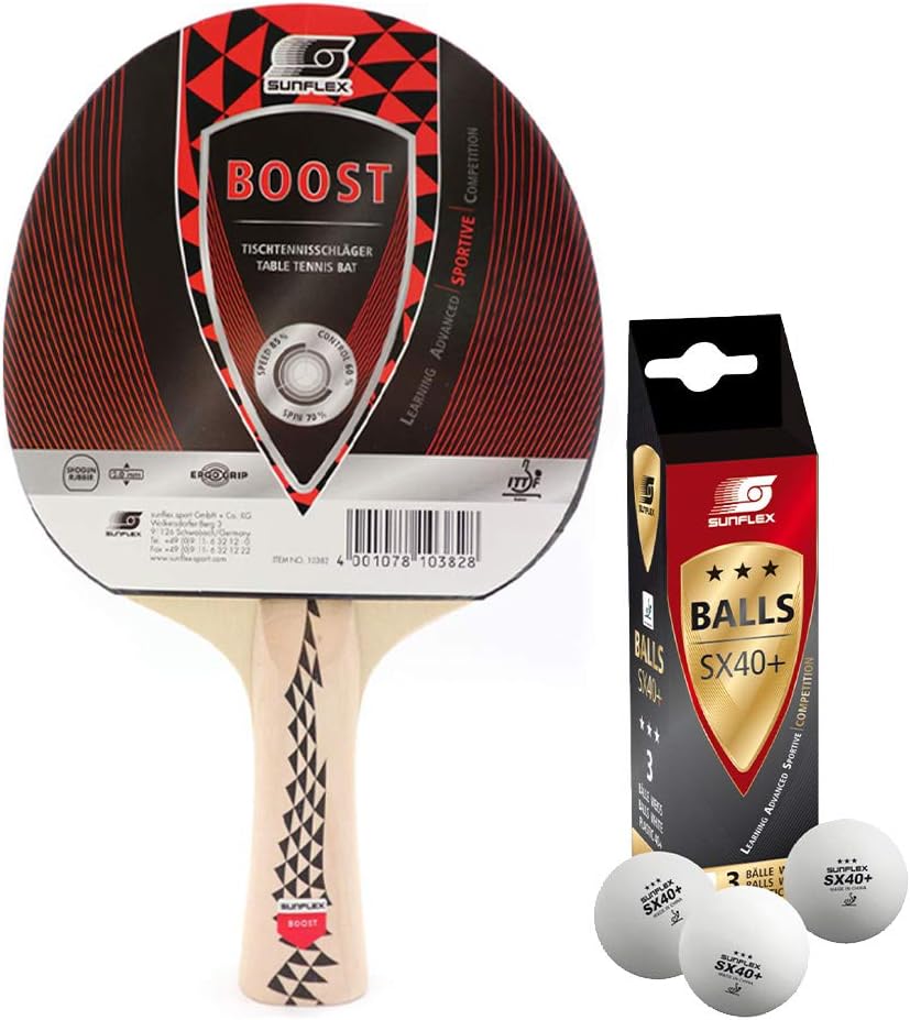Sunflex Boost Tischtennisschläger + 3*** ITTF SX+ Tischtennisbälle | Tischtennisschlägerset | Tischt